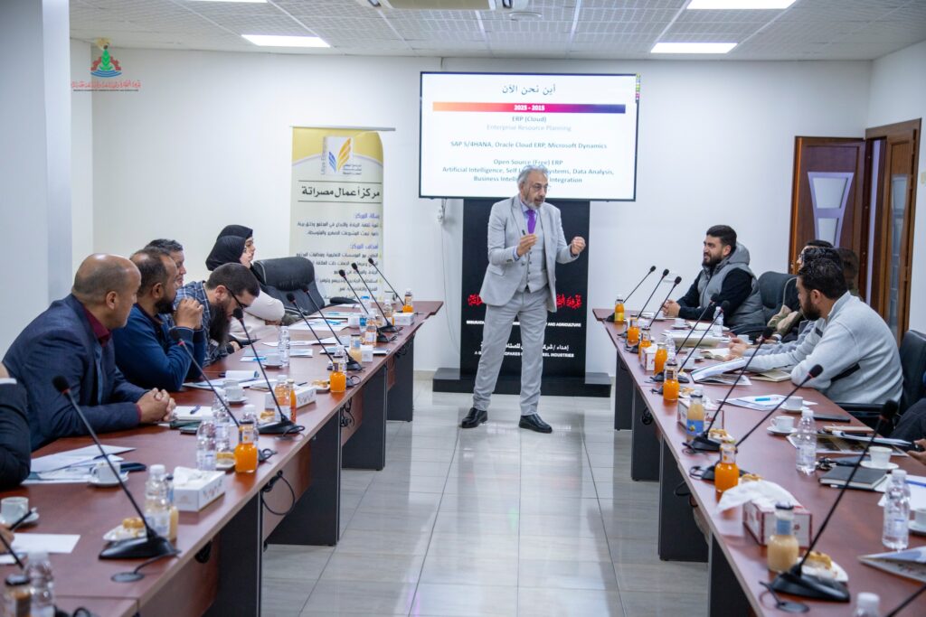 A lecture was held on Saturday morning, 22- 02-2025, at the chamber’s administrative headquarters, in the field of information technology in the industrial sector, achieving efficiency in management and production through enterprise resource planning systems (ERP) supporting the digital transformation of industries, enhancing production processes and improving quality, delivered by Mr. (Bilal Al-Qaryouti) from the kingdom of Jordan, with more than 30 years of experience in project management and consulting in the field of enterprise management, the lecture targeted a group of industrial companies affiliated with Misurata chamber of commerce, industry and agriculture.