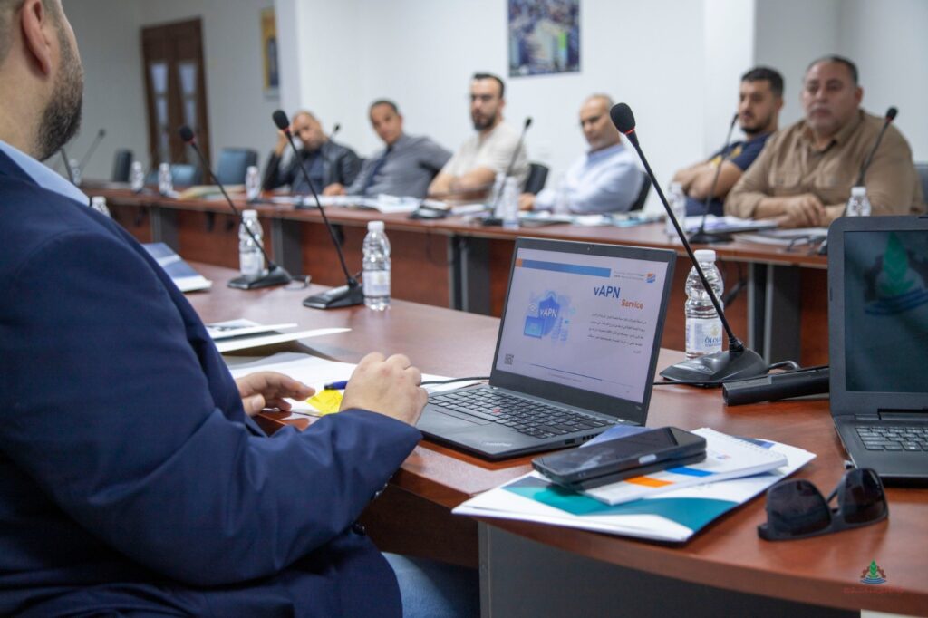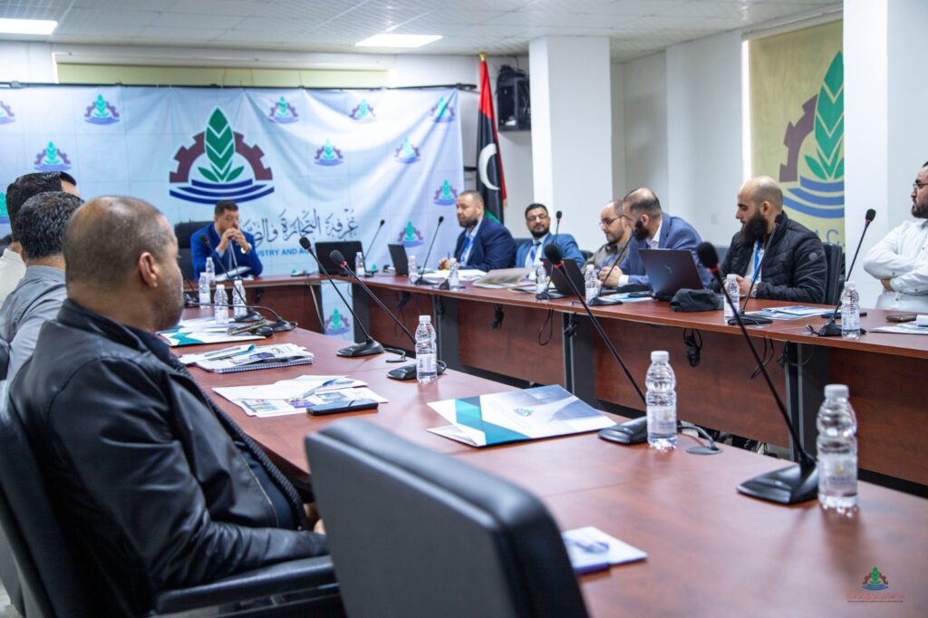 On Wednesday morning, April 23, 2025, at the chamber’s administrative headquarters, Mr. Abu Bakr Abdul Bari Shanab, general manager of the chamber, accompanied by a number of department managers, held a meeting with a group of engineers from Iwan consulting, the engineering consulting company supervising the chamber’s new building, and Bin ashour company for importing security and safety equipment and supplies, specialized in networking, surveillance, and fire systems, along with the Libya telecommunications and technology company. The meeting aimed to present the latest services provided by the company, in order to establish a partnership with Misurata chamber of commerce, industry, and agriculture.
