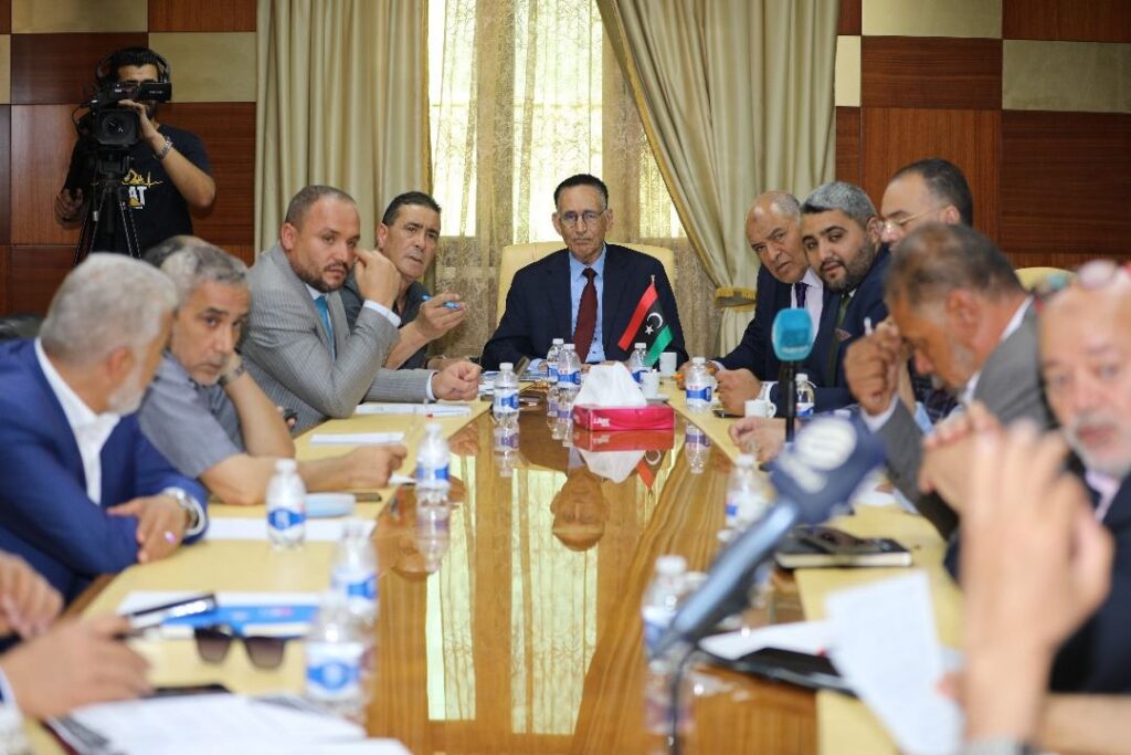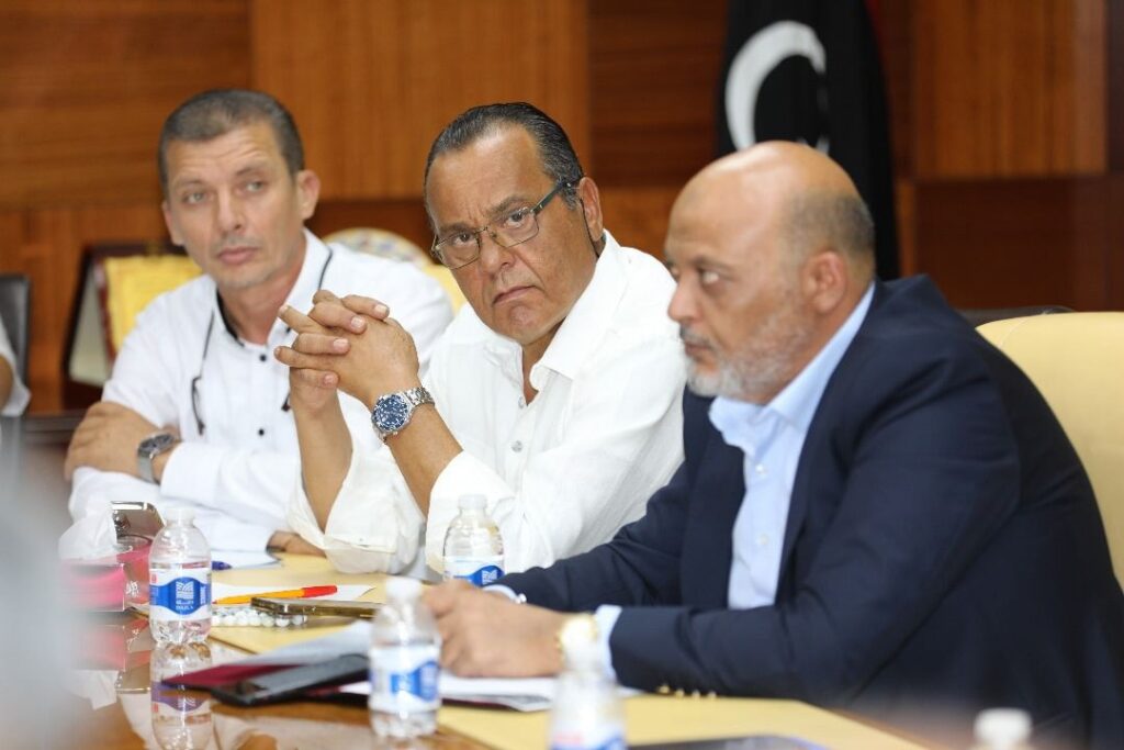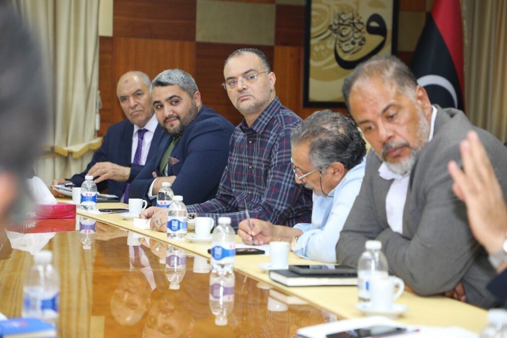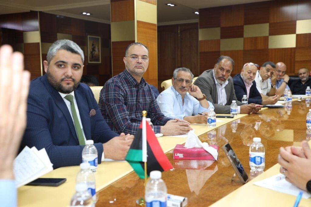 On Wednesday morning, 16/7/2025, Mr. “Mohammed Ali Al-Huwaij”, minister of economy and trade of the government of national unity, held a meeting at the ministry of economy and trade. The meeting was attended by Mr. “Fathi Al-amin Al-turki”, chairman of the board of directors of Misurata chamber, representatives from the customs authority, the customs brokers syndicate, and a number of businessmen from Misrata and Tripoli.