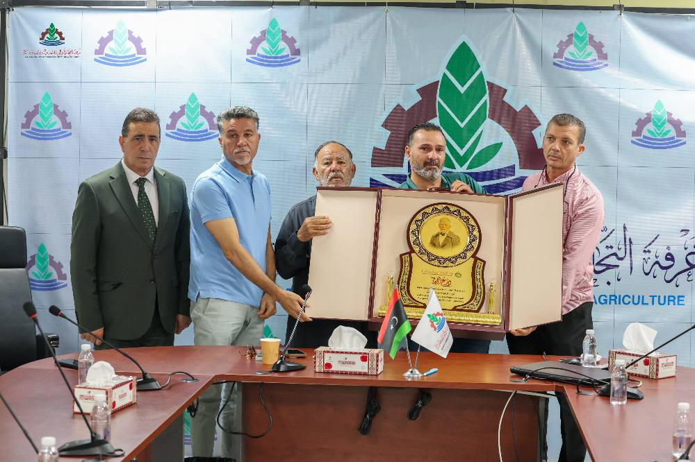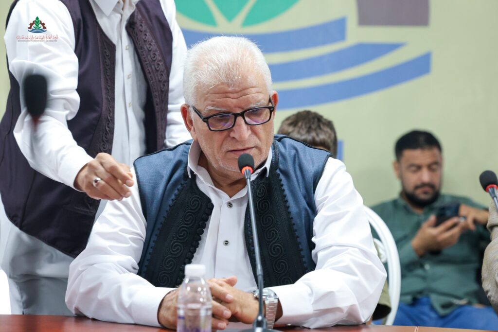 On Saturday morning, November 1/11/2025, a memorial service was held in the meeting hall of Misurata chamber of commerce, industry, and agriculture’s administrative headquarters to commemorate (Ahmed Omar Al-Muanat), a former employee of Misurata chamber. The service was attended by Mr. Fathi Al-Amin Al-Turki, chairman of the chamber’s board of directors; Mr. Abdulmajid Al-Taher Balaow, vice chairman of the board of directors; Mr. Hussein Omar Al-Majri, a member of the board of directors; Mr. Abubakr Abdulbari Shanab, the chamber’s general manager; and a number of chamber employees, along with his family, friends, and those close to him during his lifetime.Several eulogies were delivered in honor of the deceased, recalling his exemplary character and noble qualities. The chamber also presented a plaque of appreciation to (Ahmed Omar Al-Muanat) family, in recognition of his service to Misurata chamber of commerce, industry, and agriculture.