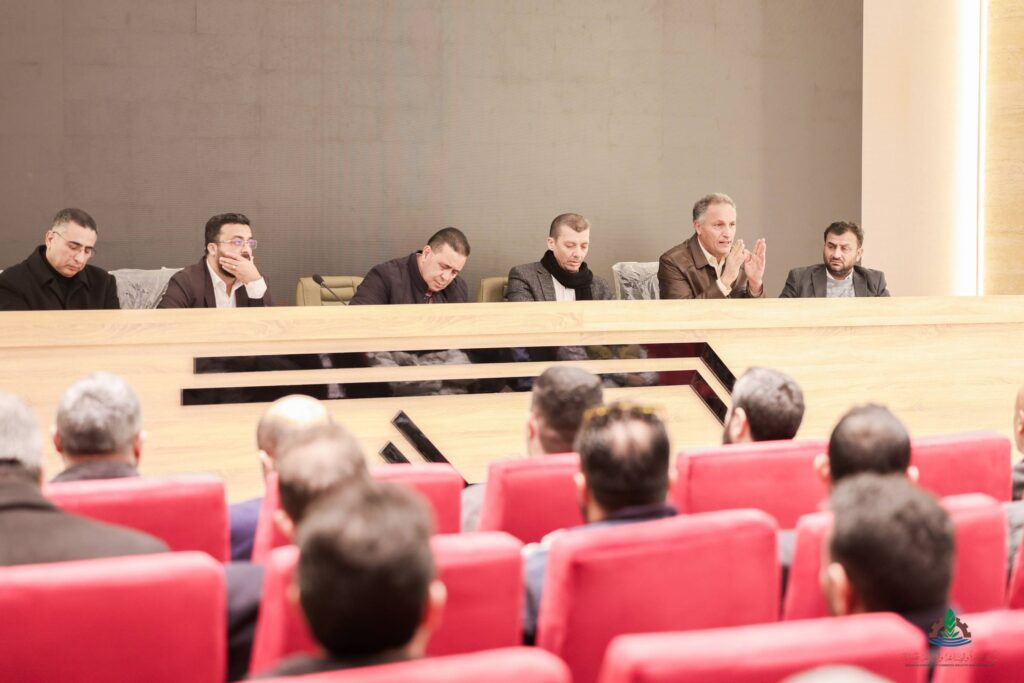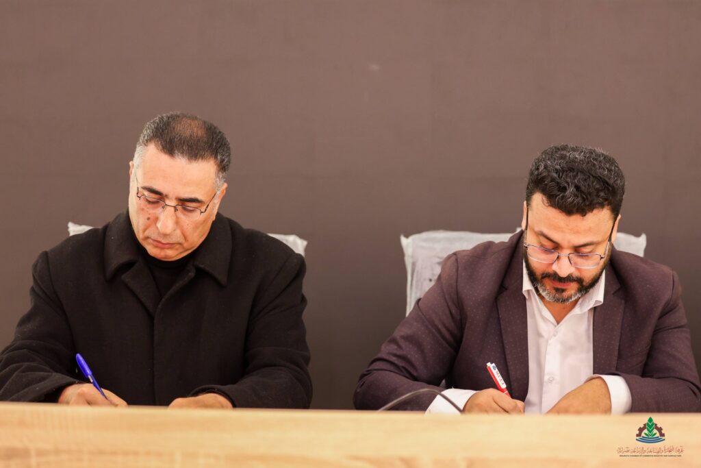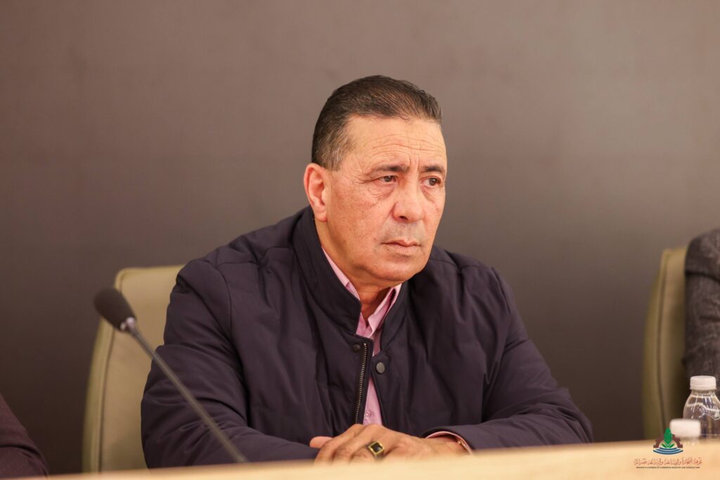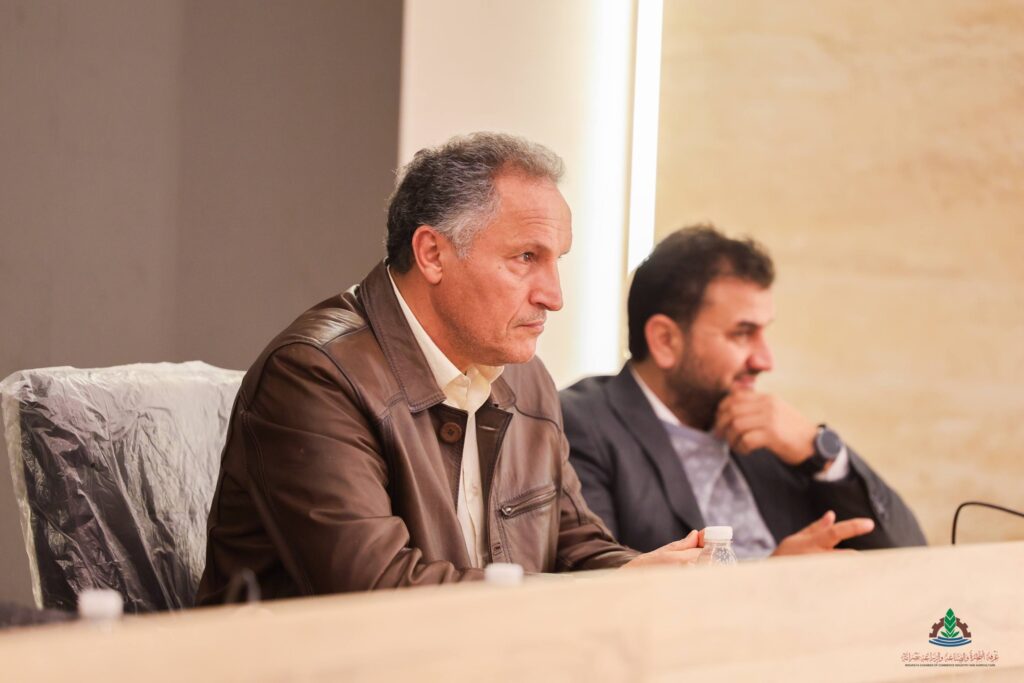On Thursday morning, 22, 1, 2026, at the new auditorium of the Chamber of Commerce and Industry, Mr. Fathi Al-Amin Al-Turki, Chairman of the board of directors of the Chamber, accompanied by Mr. Abdelmajid Al-Taher Blawo, Vice Chairman of the board of directors, Mr. Ihab Al-Hadi Al-Owaib, member of the board of directors, and members of the Higher Economic Advisory Committee from the Ministry of Economy and Trade representing the ministry, held a meeting with a group of economic experts and several businessmen affiliated with the Chamber to discuss the proposed tax project submitted to the House of Representatives.