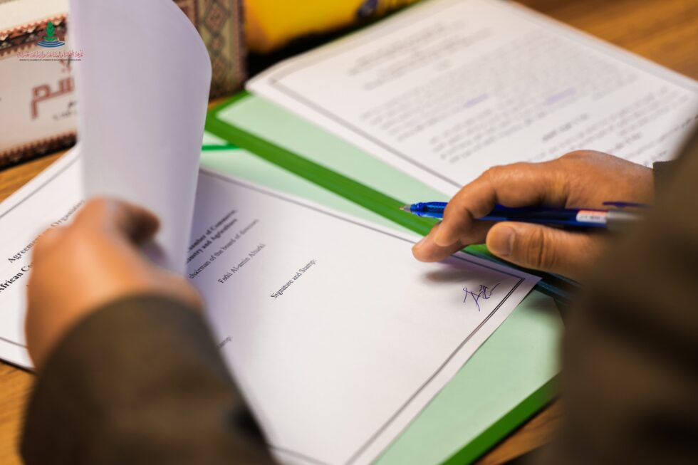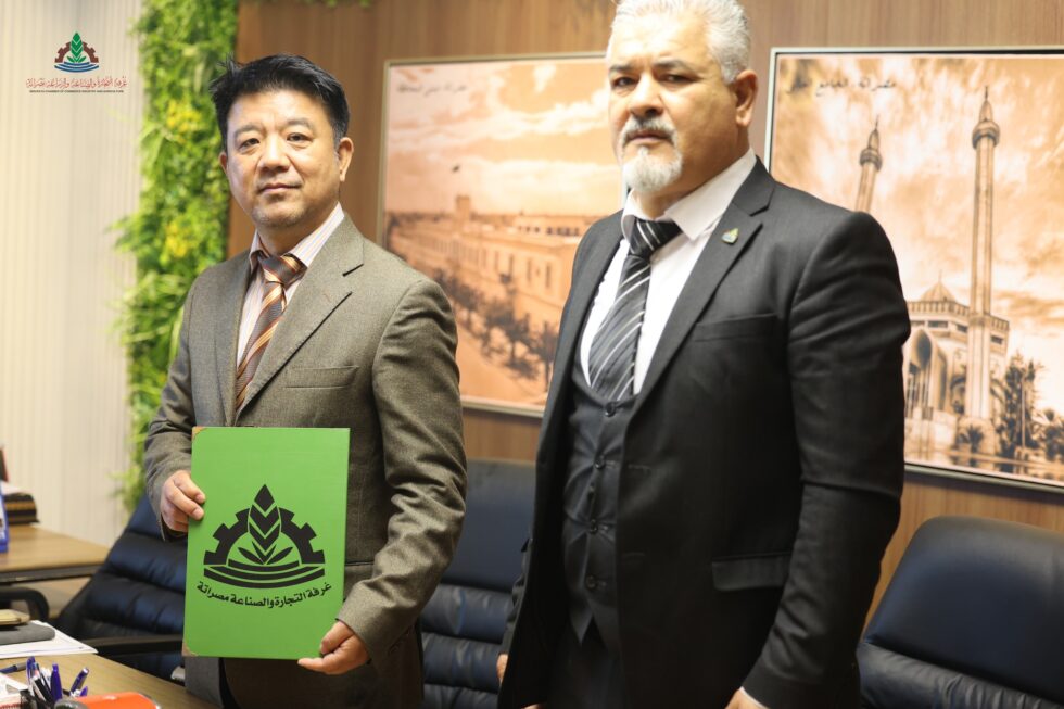 On Sunday morning, 21-12-2025, at the administrative headquarters of the chamber, Mr. Fathi Al-Amin Al-Turki, Chairman of the board of directors, signed a cooperation agreement with Mr. Ji Li, president and representative of the Shanghai International association for small and medium enterprises in North Africa.