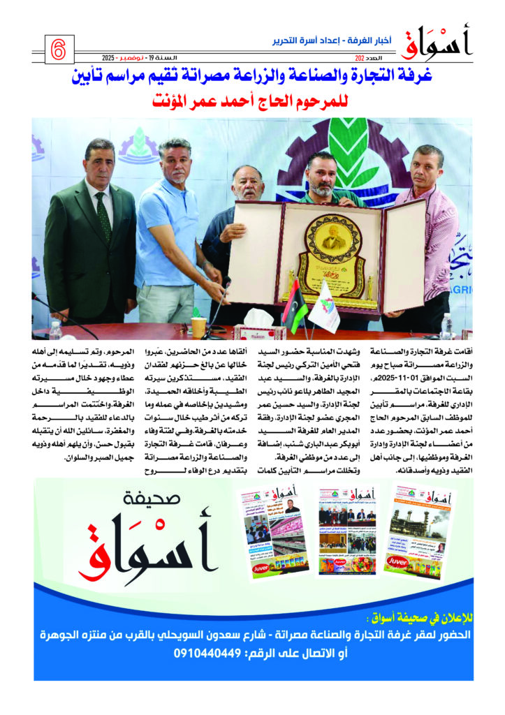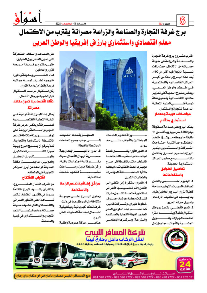 عقدت لجنة الإدارة بغرفة التجارة والصناعة والزراعة مصراتة اجتماعها العادي الأول لسنة 2026م صباح يوم السبت الموافق 07 – فبراير 2026م وذلك لمناقشة أهم مستجدات العمل بالغرفة واستعراض التقارير المالية الشهرية ، كما ناقشت اللجنة أيضاً أخر أعمال التشطيبات للمبنى الإداري الجديد للغرفة.