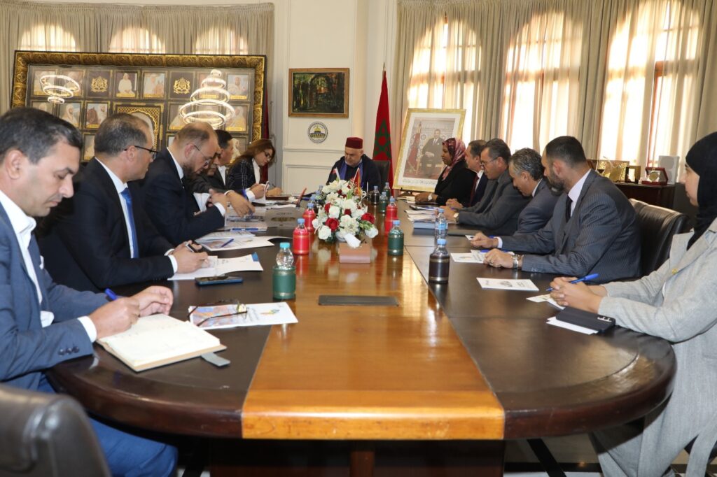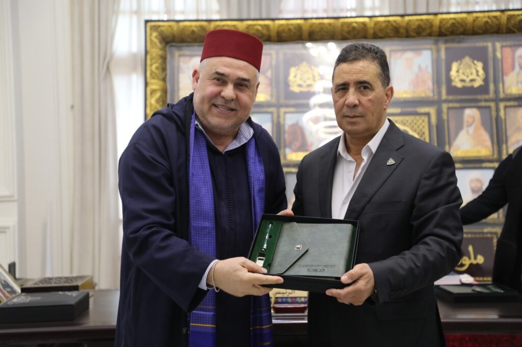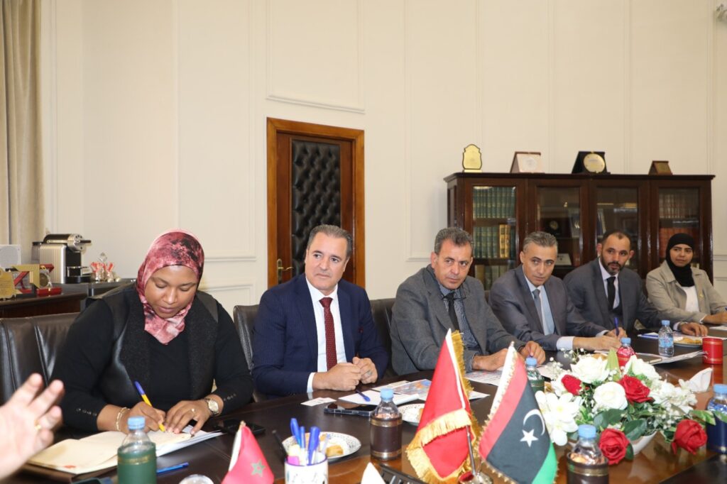 استقبل يوم الاربعاء الموافق 2025/11/19م السيد (حسان بركاني)، رئيس غرفة التجارةوالصناعة والخدمات للدار البيضاء – سطات بالمملكة المغربية بحضور السيد ( نبيل حرمة الله) النائب الثاني للرئيس ، بمقر الغرفة في مدينة الدار البيضاء. السيد (فتحي الأمين التركي)رئيس لجنة الإدارة بغرفة التجارة والصناعة والزراعة مصراتة رفقة السيدة (شذر الصيد) مستشار ومديرة مكتب التعاون الدولي لوزير الاقتصاد والتجارة بحكومة الوحدة الوطنية الليبية، وبحضور السيد (أنور ابوستة)رئيس غرفة التجارة والصناعة والزراعة طرابلس والسيد(ابراهيم الشعاب) الملحق التجاري بالسفارة الليبية بالرباط.