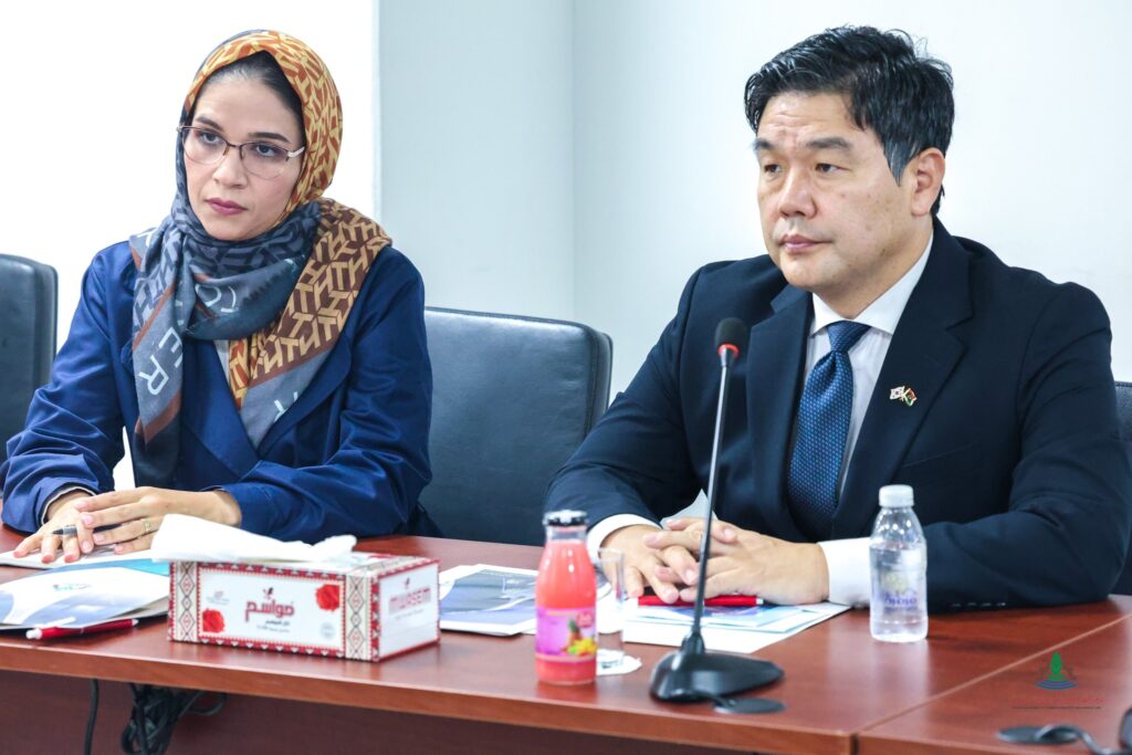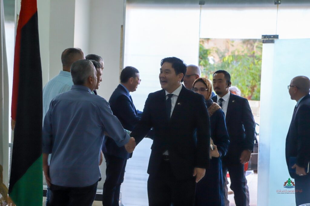 حيث استهل اللقاء السيد / فتحي الأمين بالتعريف بمدينة مصراتة وبغرفة التجارة والصناعة والزراعة مصراتة بشكل خاص وأهم الأحداث والأنشطة التي ستنظمها والتي من أهمها المعرض الأفريقي السادس للبناء والتجهيز المقام بمصراتة في شهر مايو 2026م، كما تطرق خلال هذا الاجتماع إلى طلب تسهيل الاعتمادات المصرفية من ليبيا إلى البنوك الكورية، وفتح باب المنح الدراسية في كوريا كما تعهد نائب السفير أن تكون هذه المنح بداية العام القادم بالتنسيق مع غرفة التجارة مصراتة